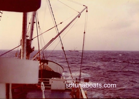 Posted on June 8, 2014 by JimmyOut to Sea.. Aboard the Finisterre with unknown seiner crossing off the stern.. Thank you to Greg Scafidi for photo. sdtunaboats@cox.net