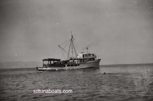 the boat is the Jenny Lynn…the man drinking from canteen is Stefano Balistreri and the man sitting on edge of skiff is Frank Corria taken in early 60s.