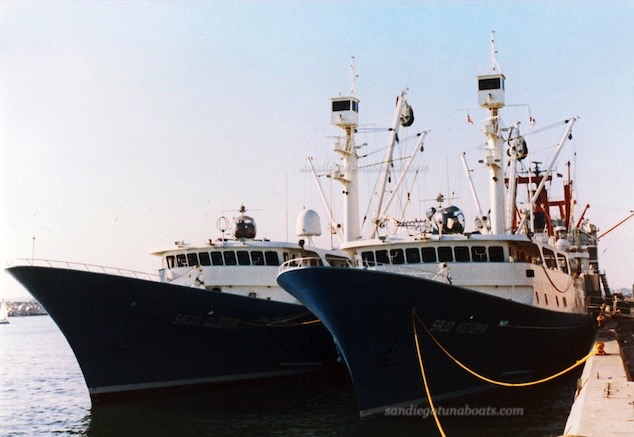 Two Campbells Seiners just launched in 1986. The Sajo Gloria ,and the Sajo Victoria docked at 10th Ave Terminal. Share your photos at sdtunaboats@cox.net or on X @sdtunaboats also on Instagram @sandiegotunaboats