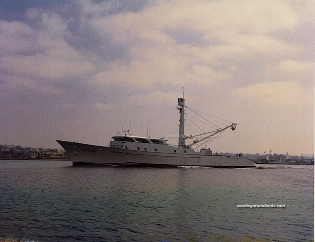 The Tuna Seiner Conquest , in San Diego Bay shortly after being launched by Campbells Shipyard in 1973. Share your photos at sdtunaboats@cox.net or on X @sdtunaboats also on Instagram @sandiegotunaboats
