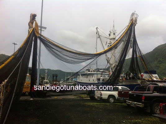 This appears to be the Diana, which has changed names a few times . Started as the South Pacific in San Diego. I’m guessing they’re meeting up with another seiner at sea. Appear to be getting ready to pick up the skiff. Send in your photos too sdtunaboats@cox.net