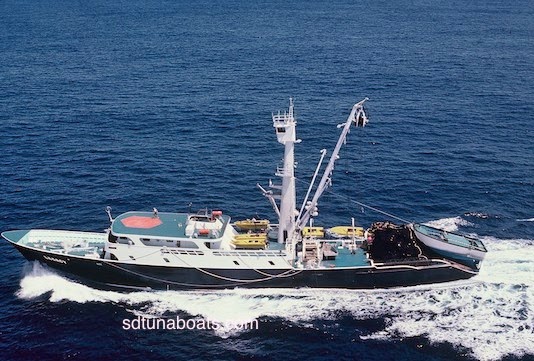 Another of the Westgate fleet.. Larry Roe and unknown seiner in back ground. Im not sure if this seiner changed names , but I’m sure it did.. sdtunaboats@cox.net