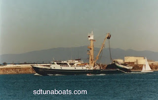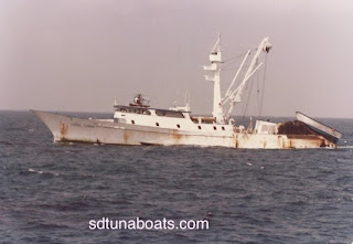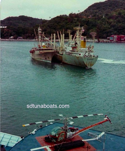 Sea Chase unloading on a steamer in Samoa. Believe this was taken around 1980 or 81. We need your pictures if we are going to continue to keep our history alive of the San Diego Tuna Fleet.. sdtunaboats@cox.net
