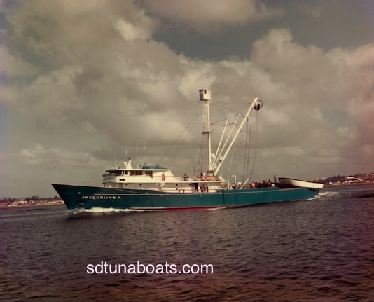 Jacqueline A, in San Diego Bay. Tuna Seiner built by San Diego Marine..sister ship to Sea Quest and Antonina C .sdtunaboats@cox.net