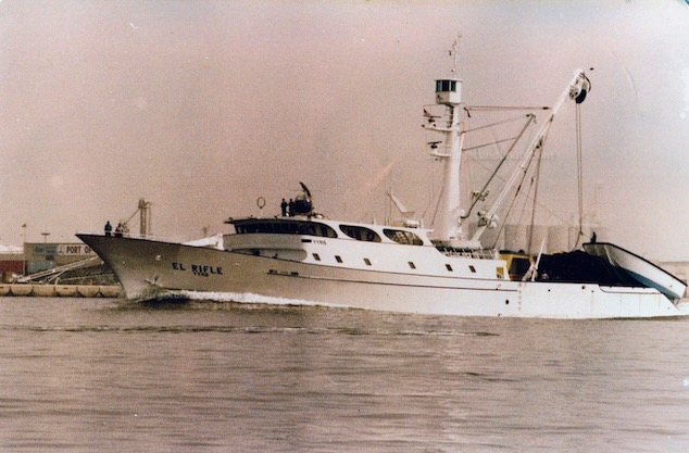The Tuna Seiner El Rifle, heading out of San Diego Bay shortly after being launched by Campbells Shipyard in 1980. Share your photos at sdtunaboats@cox.net or on X @sdtunaboats also on Instagram @sandiegotunaboats