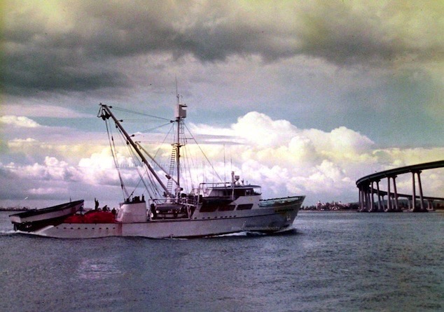 Larry Bartel, sends in some photos of his trip in 1980 as the Helicopter pilot aboard the Descubridor. This Seiner was launched in 1976 under its original name The Zapata Discoverer, a huge thank you to Larry for sharing with us . Anyone else wants to share your photos? please do so. Share your photos at sdtunaboats@cox.net or on X @sdtunaboats also on Instagram @sandiegotunaboats